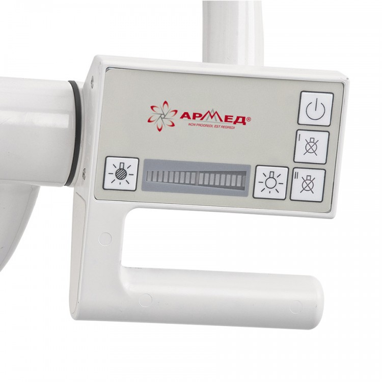 Диаметр светового поля и яркость светильника регулируются с помощью кнопочной панели.