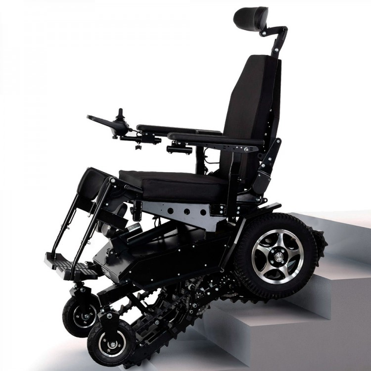 Высокая проходимость и плавность хода – колесная платформа обеспечивает уверенное передвижение по дорогам и ровной поверхности, а гусеничная платформа коляски позволяет легко преодолевать лестницы, бордюры и препятствия.