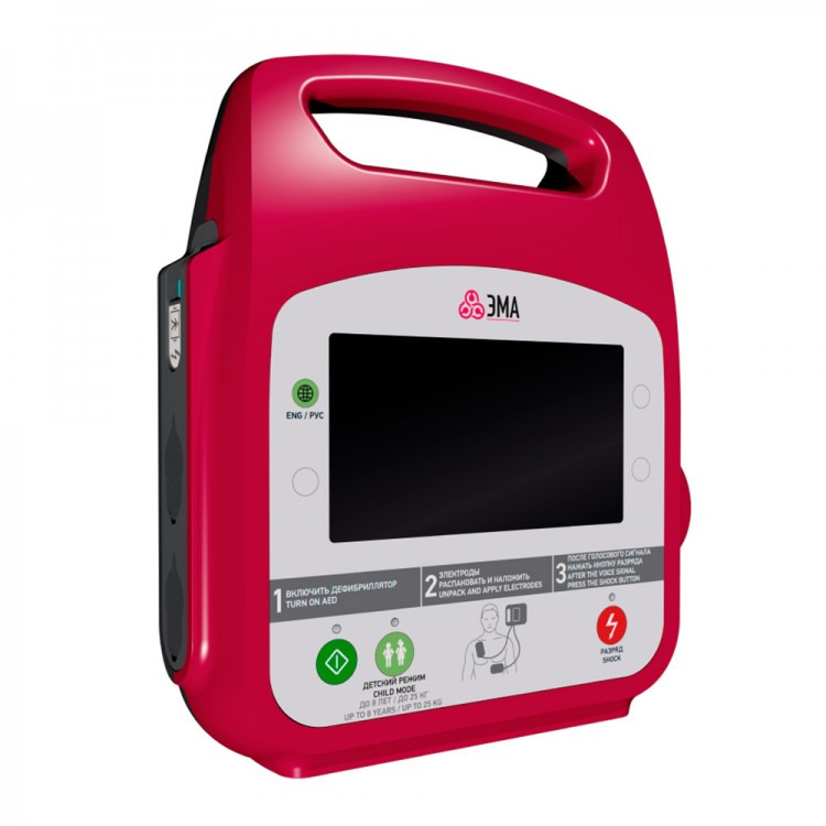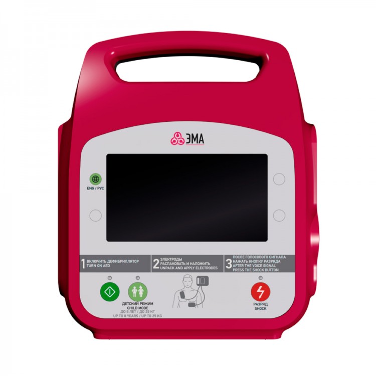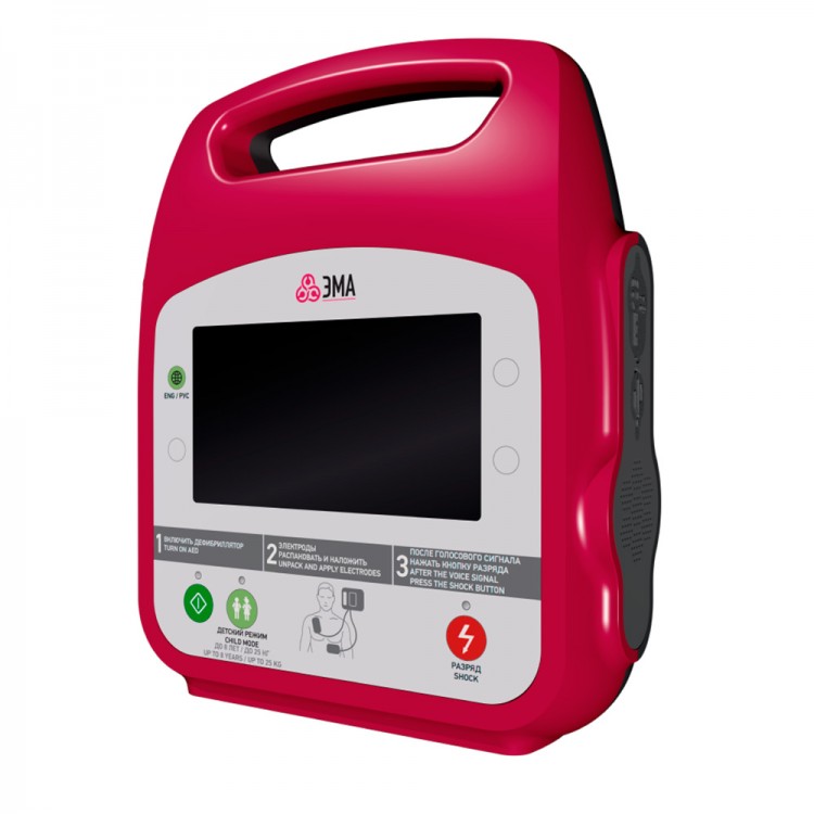 Дефибриллятор ЭМА Пульс 1 – легкий переносной дефибриллятор для профессионального использования с дисплеем и питанием от аккумуляторной батареи.