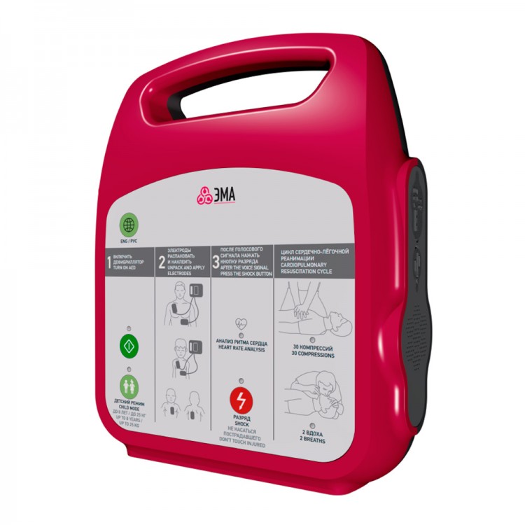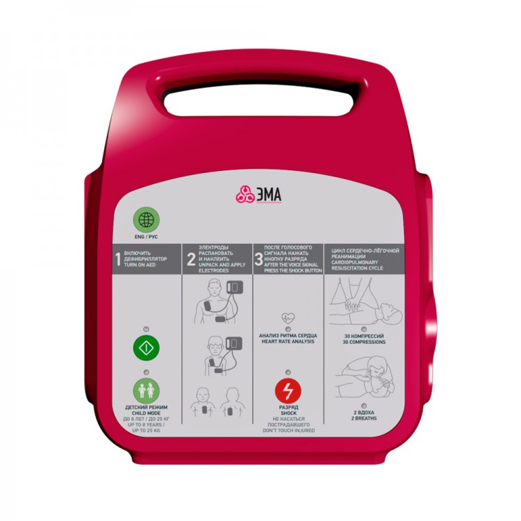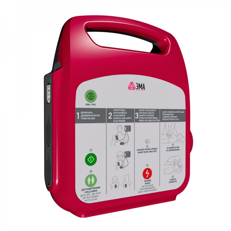 Дефибриллятор ЭМА Пульс 2 – переносной полуавтоматический дефибриллятор для профессионального использования с питанием от неперезаряжаемой батареи.