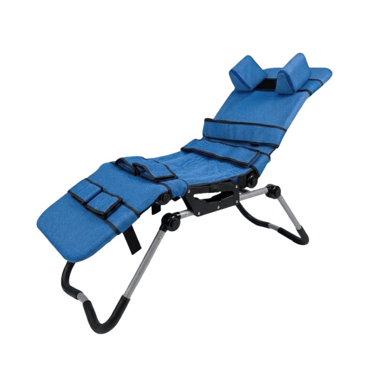 Стабилизирующий подголовник, ремни для стабилизации туловища и ног легко регулируются, адаптируя кресло к индивидуальным параметрам и повышая безопасность ребенка во время купания.