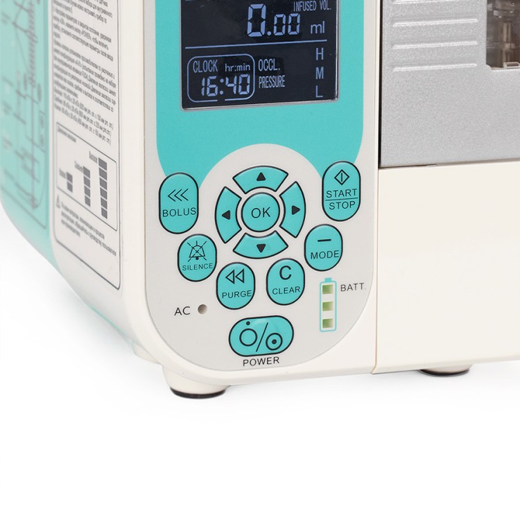 Удобная панель управления с высокочувствительными кнопками позволяет легко регулировать процесс инфузии.