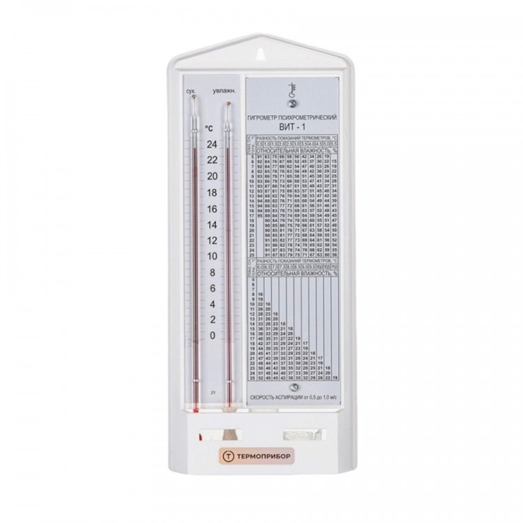 Гигрометр психрометрический ВИТ-1 с пластиковым питателем предназначен для измерения относительной влажности воздуха и температуры.