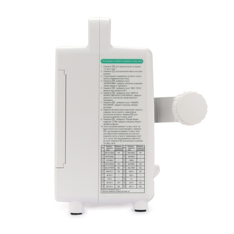 - Скорость инфузии – от 1 до 1200 мл/ч.