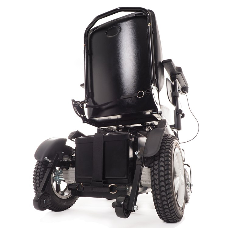 Респектабельное кресло-коляска MET NOVA с электроприводным лифтом сиденья, который поднимает сиденье с пользователем с помощью электроактуатора.