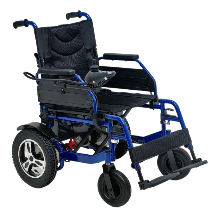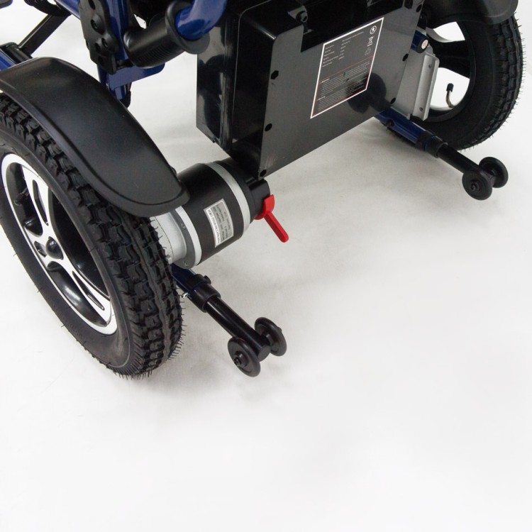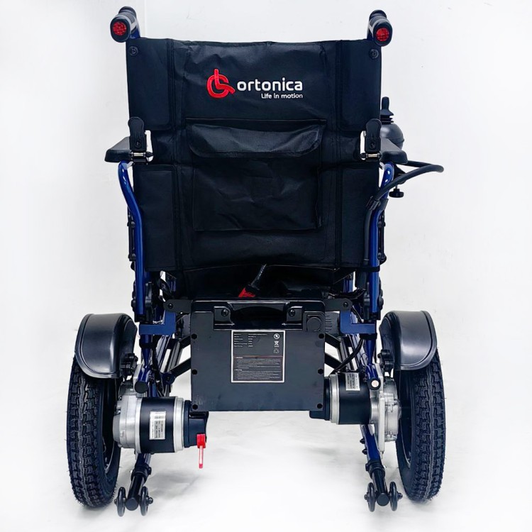 Складная инвалидная коляска Ortonica Pulse 110 с электроприводом, антиопрокидывателем и USB-выходом для зарядки мобильных устройств.
