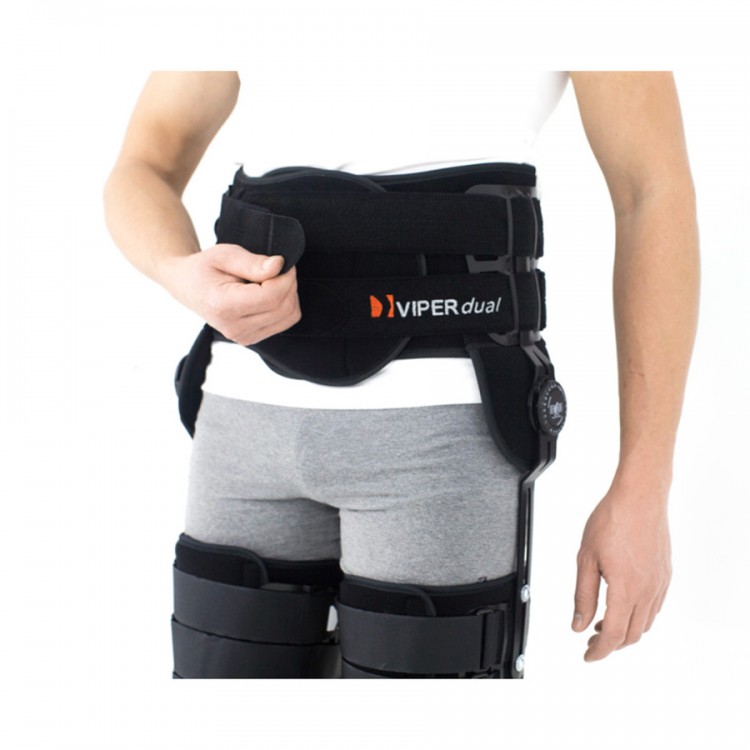 Легко подгоняется к телу пациента, стабилизирует и разгружает тазобедренные и коленные суставы, позволяя постепенно увеличивать диапазон подвижности.