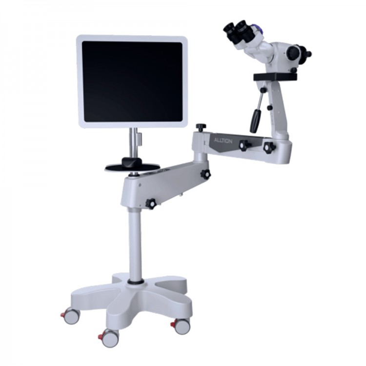 Медицинский бинокулярный кольпоскоп Alltion AC 5000 с высококачественной оптикой и пятиступенчатой системой увеличения для профессиональной диагностики.