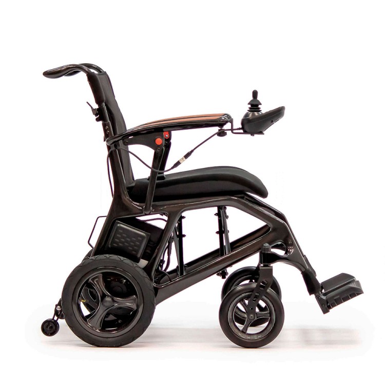 Легкая кресло-коляска МЕТ CARBONYX FLO с электрическим приводом и складной рамой из карбона.