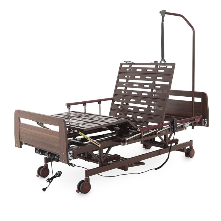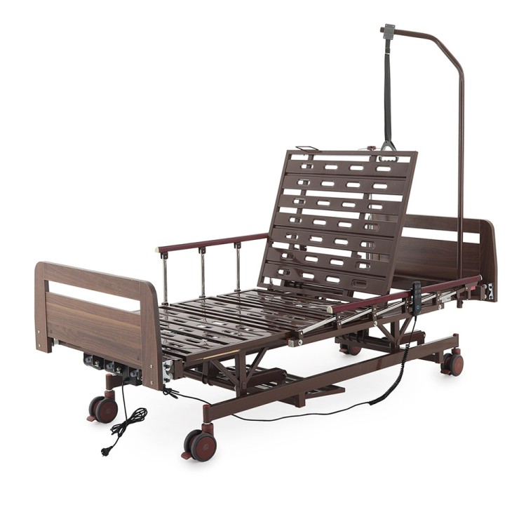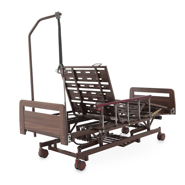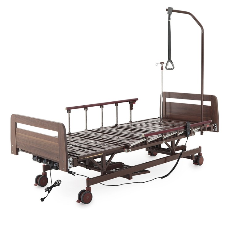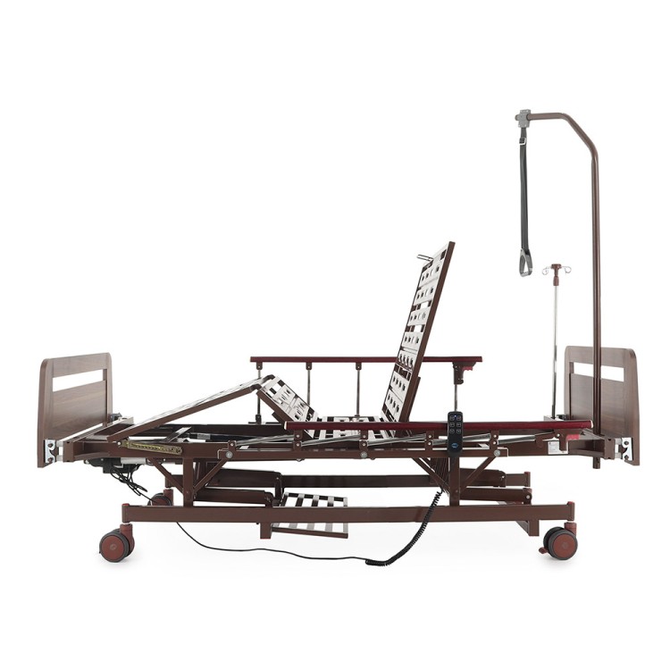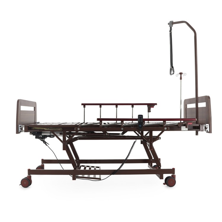 Функциональная медицинская кровать Med-Mos DB-6 (ЛДСП венге) с гибридной системой привода, резервным питанием от аккумулятора и возможностью удлинения ложа для использования в лечебных учреждениях.