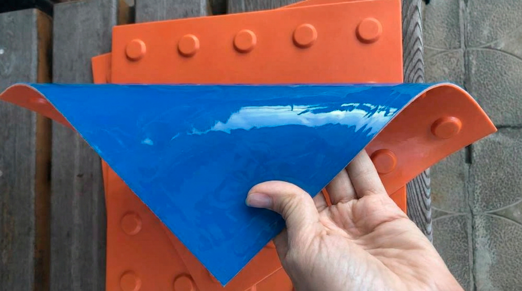 Тактильная полиуретановая плитка укладывается на четырехкомпонентный клей, либо на самоклеющуюся поверхность с подклейкой углов.