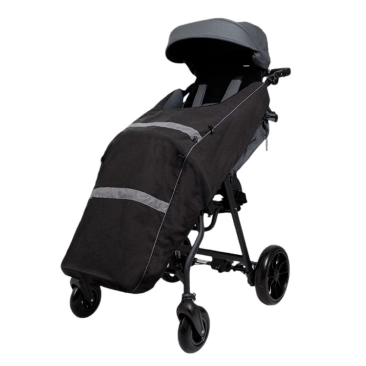 Рассчитан на рост ребенка и покрывает подножки коляски.
