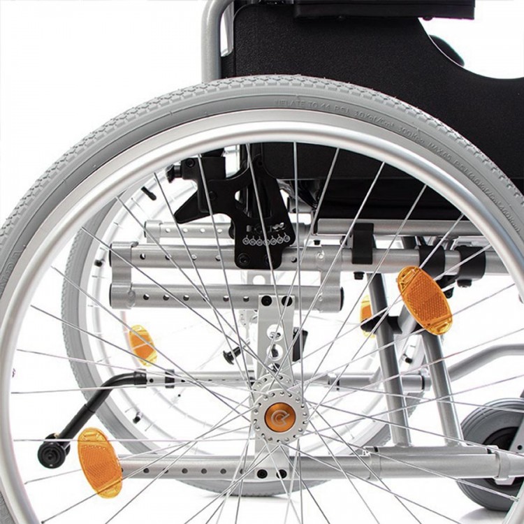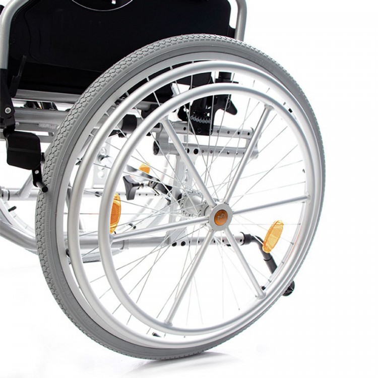 Прочный двойной обод приводного колеса – устанавливается под действующую руку с удобной стороны.