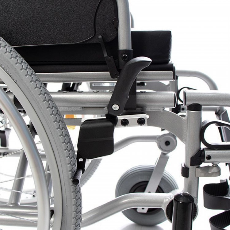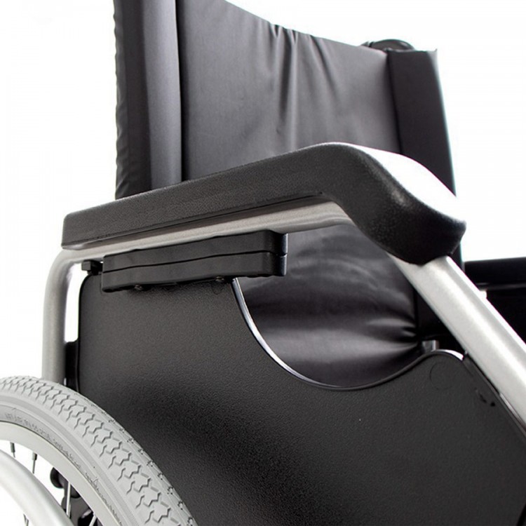 Откидные подлокотники регулируются по высоте с помощью проставок и облегчают пересаживание с коляски.