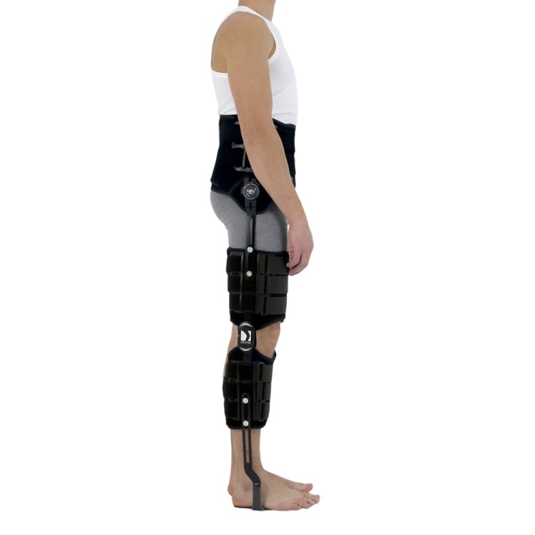 Односторонний охватывающий ортез HKAFO Reh4Mat COMPLEX 2R на таз, бедро, голень и стопу с регулировкой подвижности в суставах.