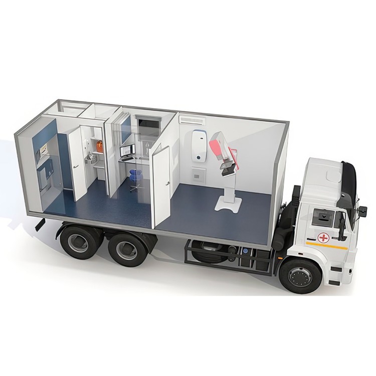 Мобильный лечебно-профилактический модуль «РЕНТГЕН-ДИАГНОСТИКА» в исполнении МАММОГРАФ для скрининговых и диагностических обследований молочных желез.