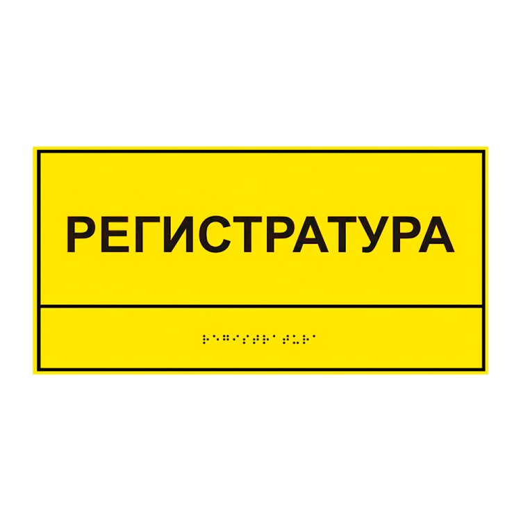 Тактильная табличка «Регистратура» для безопасной ориентировки людей с нарушениями зрения в медицинских учреждениях.
