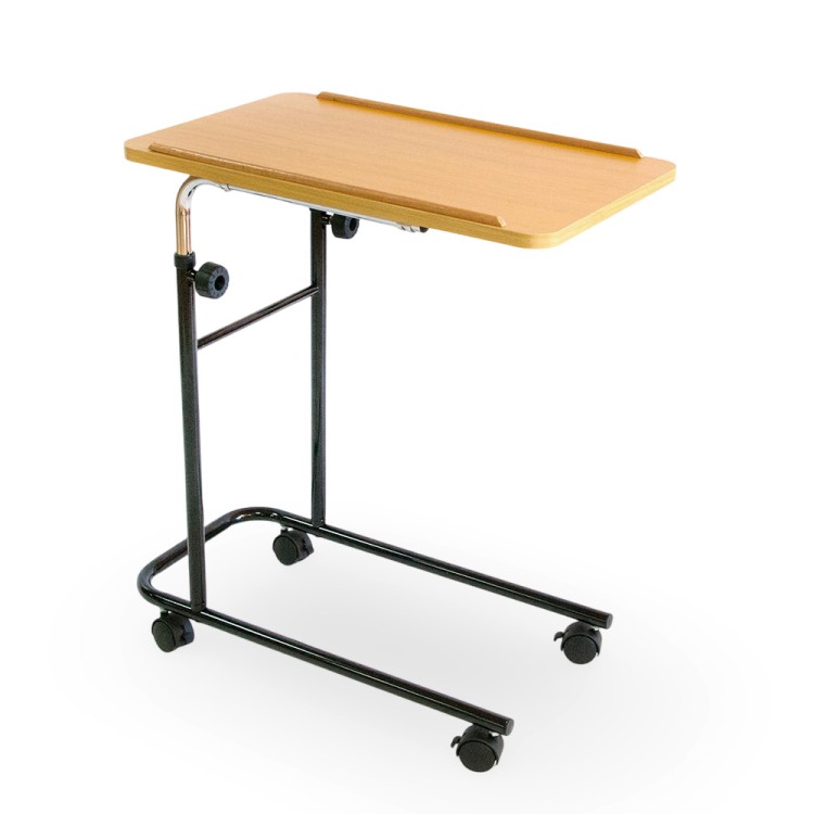 Основание на колесах заезжает под кровать – столешница располагается сверху над лежащим для удобного проведения лечебных процедур, приема лекарства и пищи.