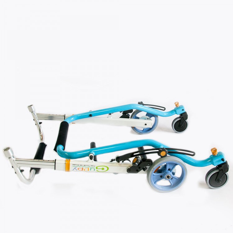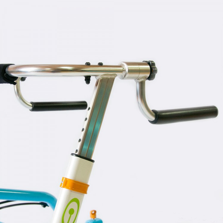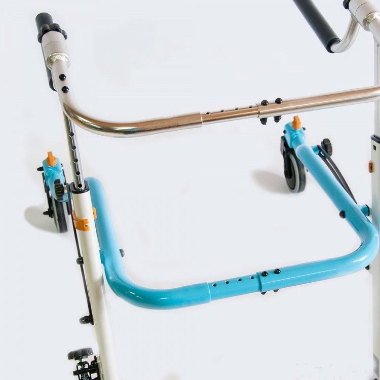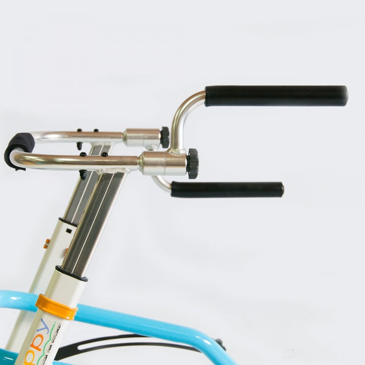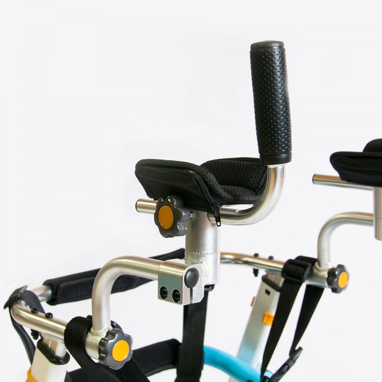 Ручки подстраиваются индивидуально под пользователя. Положение ручек регулируется вокруг оси. Подлокотные опоры регулируются по оси. Рукоятки подлокотных опор по глубине и наклону. Фиксатор для таза выполнен из мягкого и дышащего материала и крепится на раме ходунков с помощью регулировочных ремней.